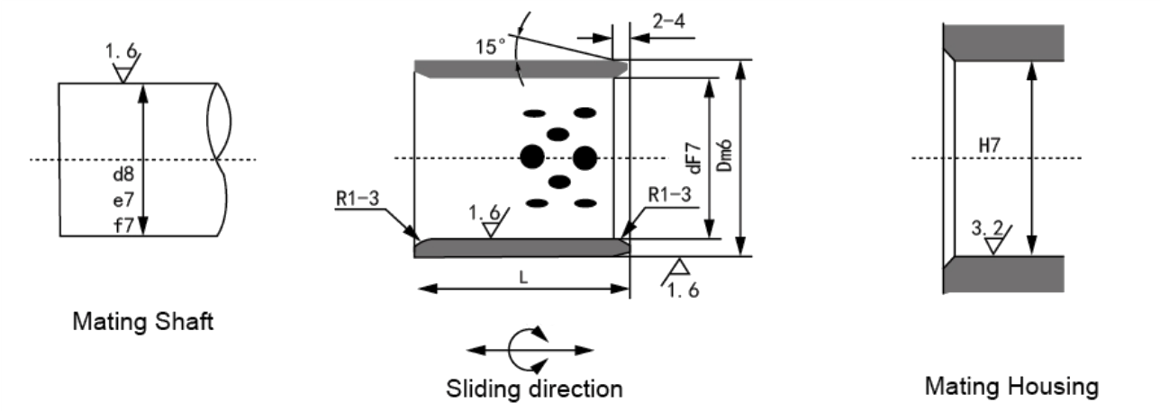 | d | D | I.D. F7 | O.D. m6 | L -0.30-0.10 |